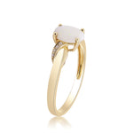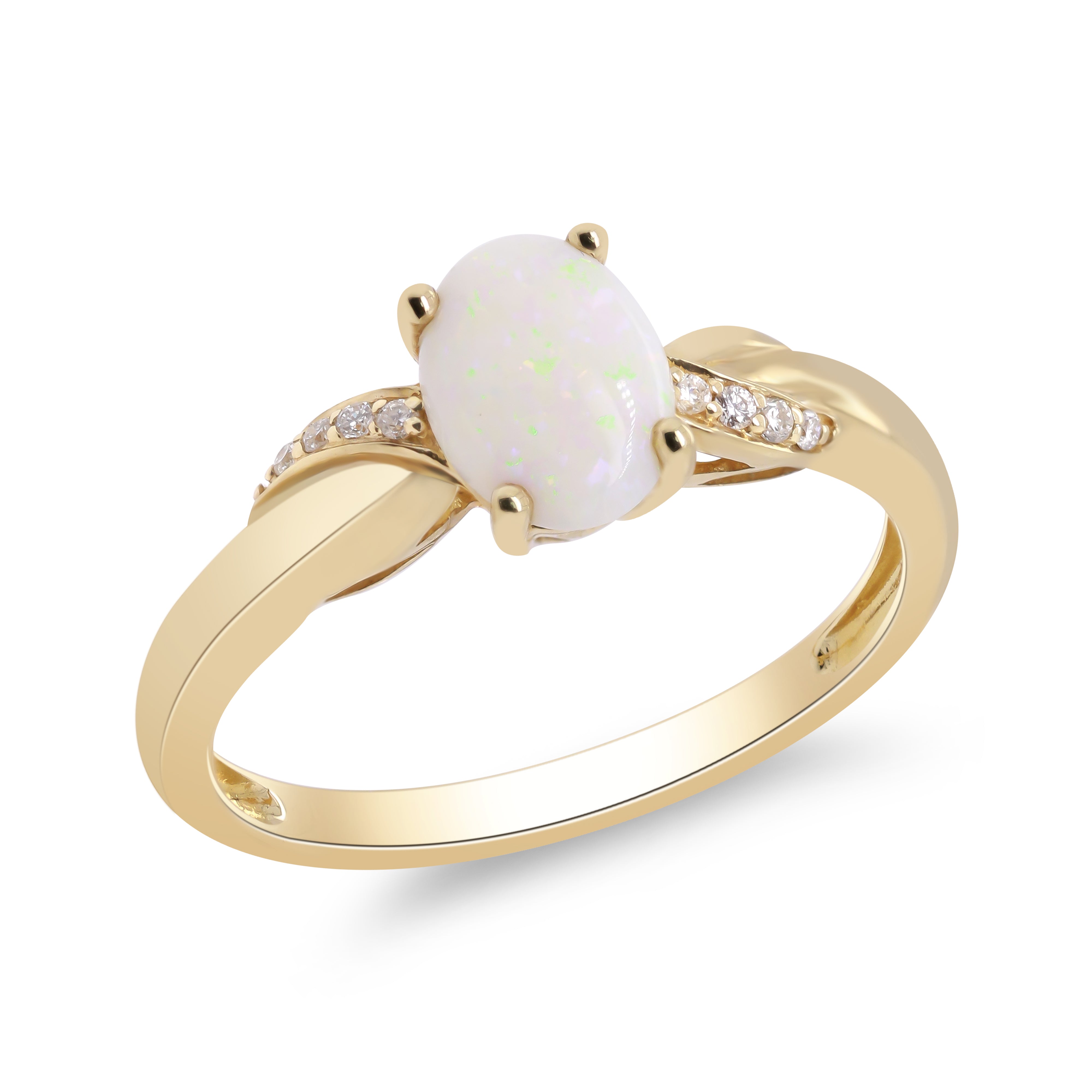 Decorate yourself in elegance with this Ring crafted from 10-karat Yellow Gold by Gin & Grace. This Ring is made up of Oval-Cut (1 pcs) 0.70 carat African Opal and Round Cut Diamond (8 Pcs) 0.04 Carat. This Ring weighs 2.09 grams. This delicate Ring is polished to a high finish shine.