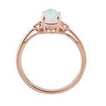 Decorate yourself in elegance with this Ring is crafted from 10K Rose Gold by Gin & Grace Ring. The jewelry boasts Oval-Cut cabochon setting white color Natural Opal (1 pcs) 0.82 Carat and Round-Cut prong setting Diamond (4 pcs) 0.04 Carat. This Ring is weight 1.62 grams. This delicate Ring is polished to a high finish shine. Simple Stud clasps keep these Ring securely fastened.