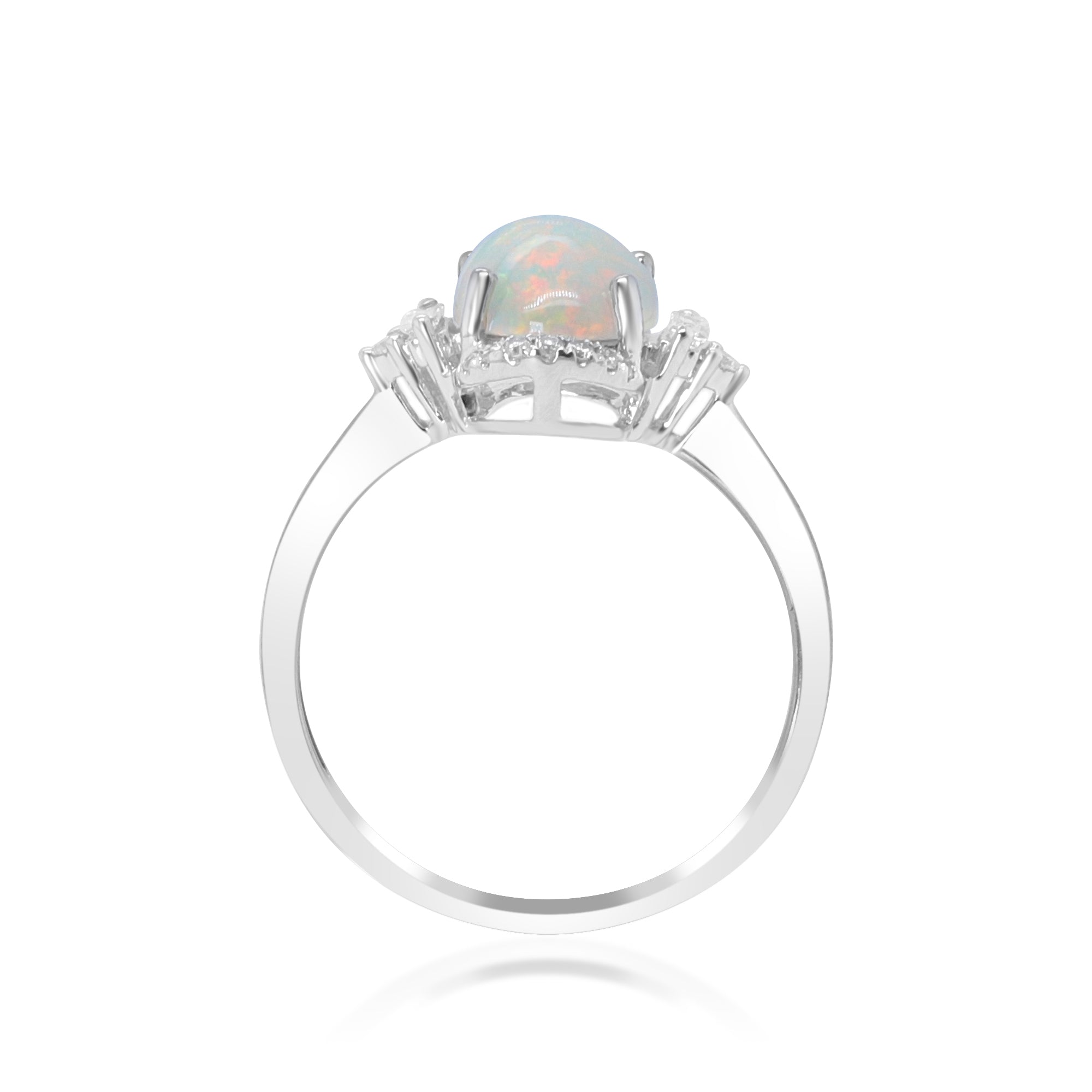 Decorate yourself in elegance with this Ring is crafted from 10-karat White Gold by Gin & Grace Ring. This Ring is made up of Oval-Cut Ethiopian Opal (1 Pcs) 1.29 Carat and Round-cut White Diamond (16 Pcs) 0.07 Carat and Baguette-cut (2 Pcs) 0.08 Carat. This Ring is weight 2.08 grams. This delicate Ring is polished to a high finish shine.