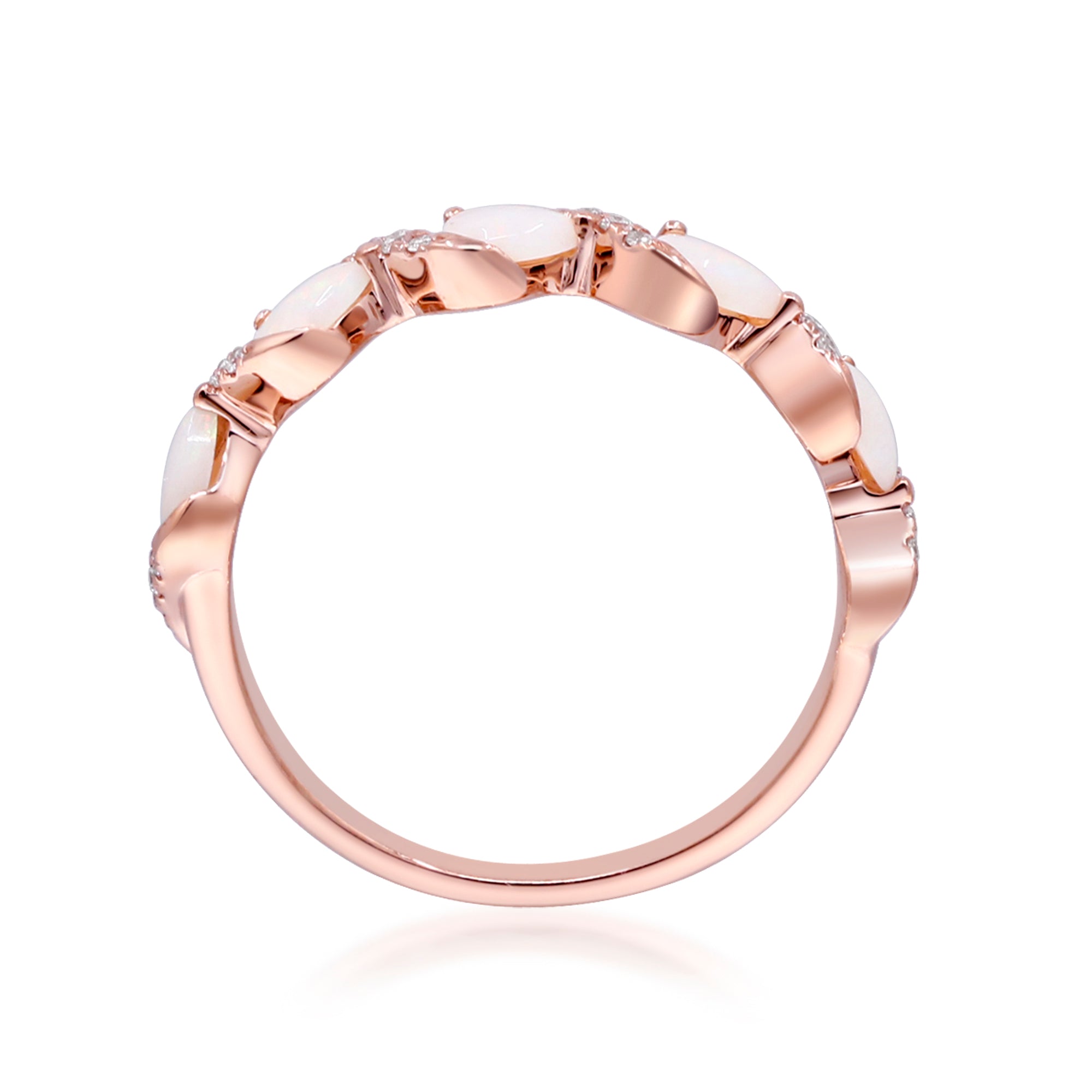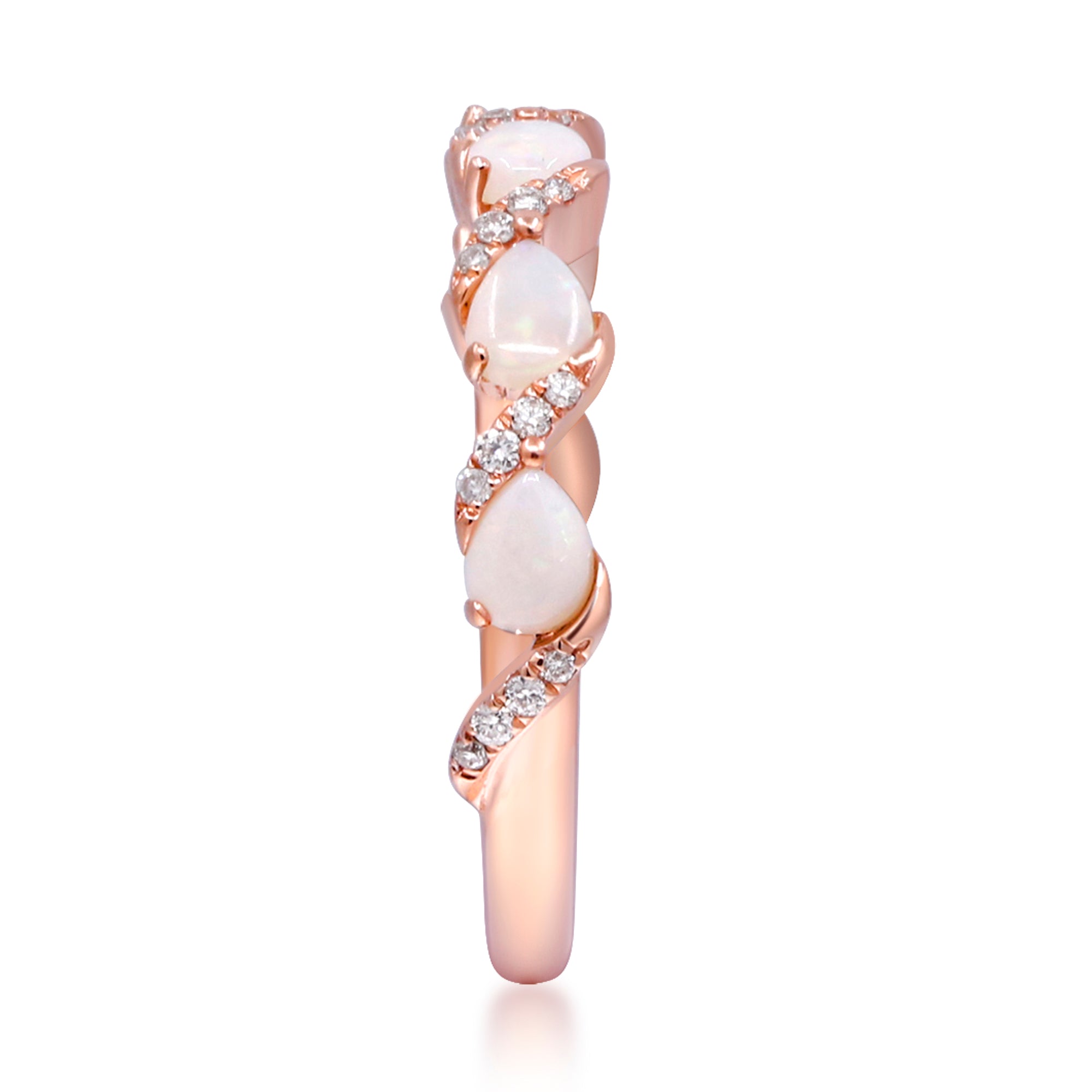 Decorate yourself in elegance with this Ring is crafted from 10K Rose Gold by Gin & Grace. This Ring is made up of Pear-Cut Ethiopian Opal (5 Pcs) 0.52 carat and round-cut White diamond (24 pcs) 0.09 carat. This Ring is weight 1.84 grams. This delicate Ring is polished to a high finish shine.