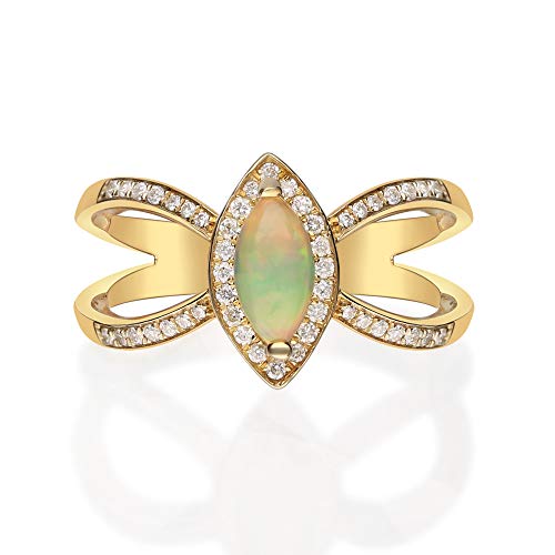 Stunning, timeless and classy eternity Unique Ring. Decorate yourself in luxury with this Gin & Grace Ring. The 10K Yellow Gold jewelry boasts Marquise-Cut Prong Setting Natural African Opal (1 pcs) 0.38 Carat, along with Natural Round cut white Diamond (48 Pcs) 0.22 Carat, accent stones for a lovely design. This Ring is weight 3.31 grams. Crafted with 10KYellow Gold, this delicate Ring is polished to a high finish shine.