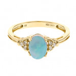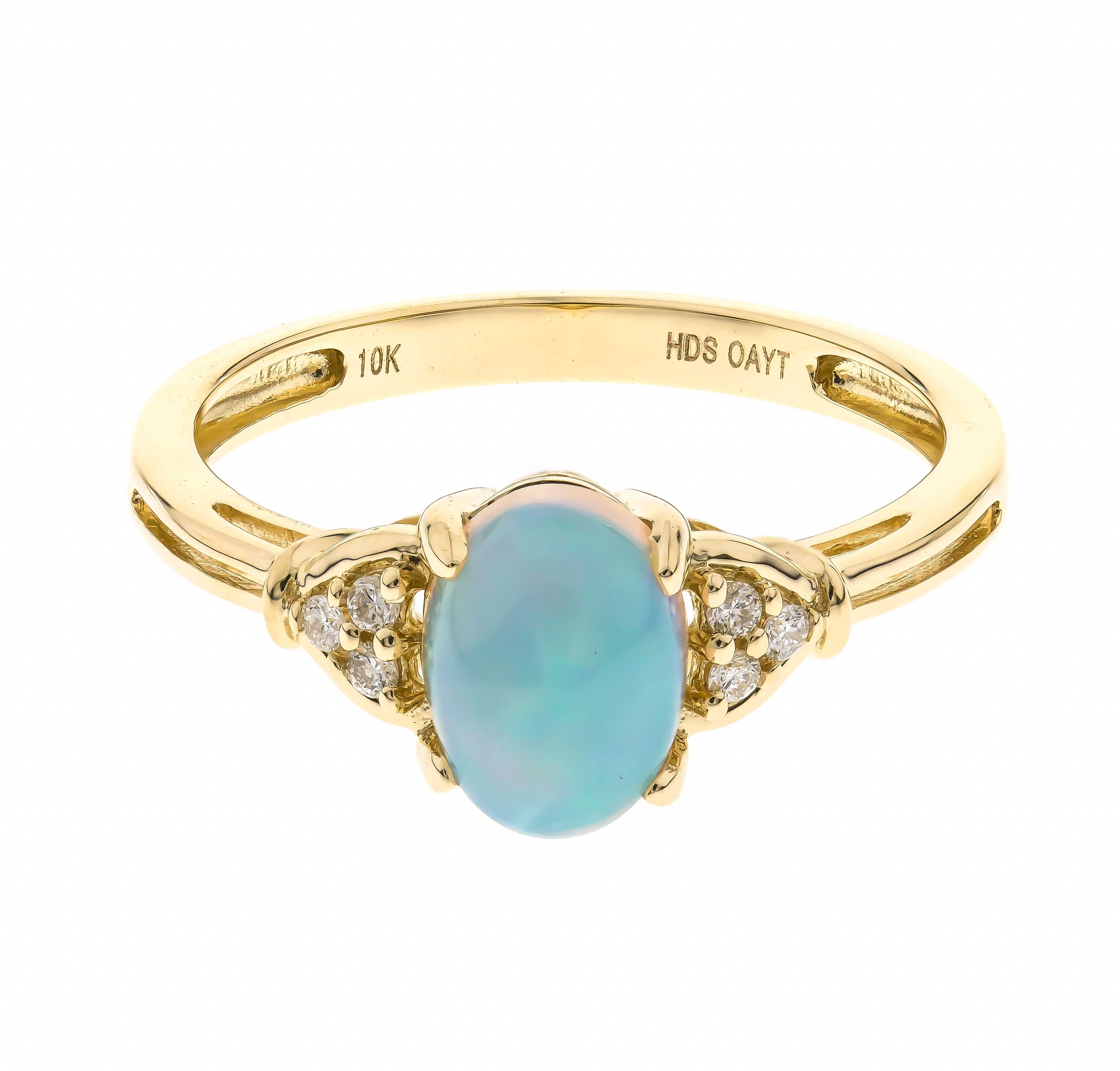 Stunning, timeless and classy eternity Unique ring. Decorate yourself in luxury with this Gin & Grace ring. This ring is made up of Oval-Cut Prong Setting Natural African Opal (1 pcs) 0.93 Carat and Round-Cut Prong Setting Diamond (6 pcs) 0.06 Carat accent stones for a lovely design. This ring is weight 1.69 grams. Crafted with 10k Yellow Gold, this delicate Ring is polished to a high finish shine