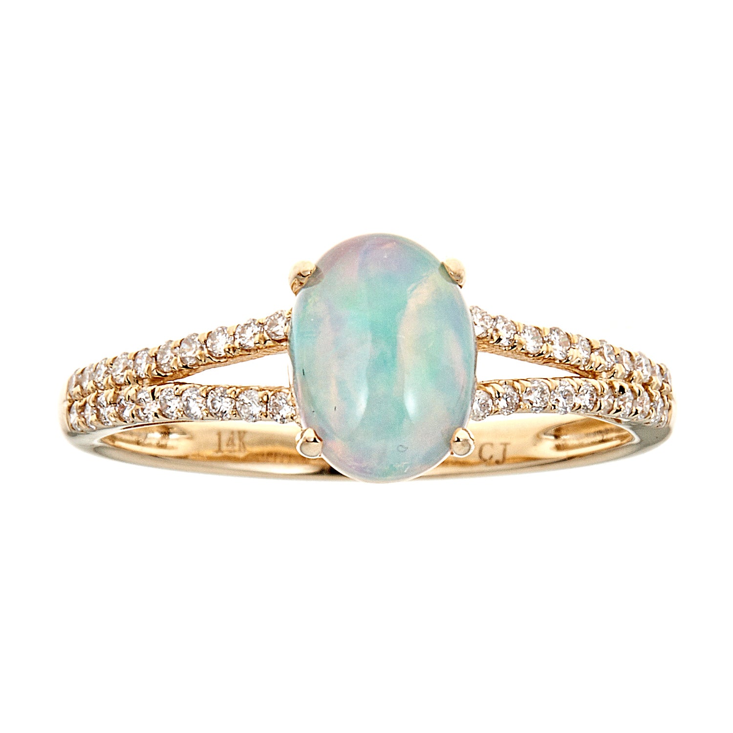 Stunning, timeless and classy eternity Unique ring. Decorate yourself in luxury with this Gin & Grace ring. The 10k Yellow Gold jewelry boasts 6X8 mm Oval-Cut Prong Setting Ethiopian Opal (1pcs) 0.71 Carat and Round-Cut Prong Setting Diamond (40pcs) 0.20 Carat accent stones for a lovely design. This ring is weight 2.22 grams. Crafted with 10k Yellow Gold, this delicate Ring is polished to a high finish shine.