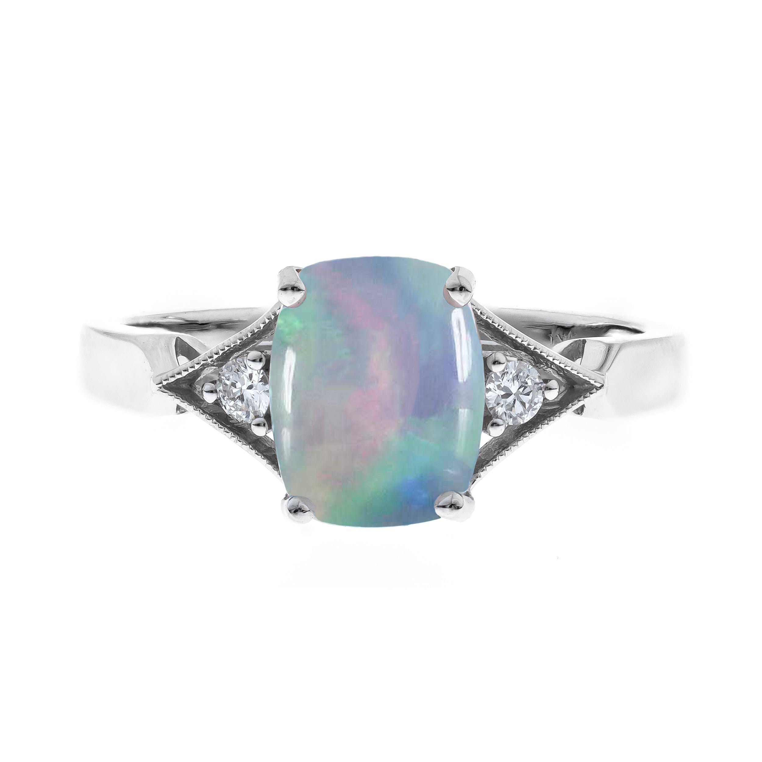Hailey 10K White Gold Cushion-Cut Opal Ring