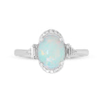 Decorate yourself in elegance with this Ring is crafted from 10-karat White Gold by Gin & Grace Ring. This Ring is made up of Oval-Cut Ethiopian Opal (1 Pcs) 1.29 Carat and Round-cut White Diamond (16 Pcs) 0.07 Carat and Baguette-cut (2 Pcs) 0.08 Carat. This Ring is weight 2.08 grams. This delicate Ring is polished to a high finish shine.