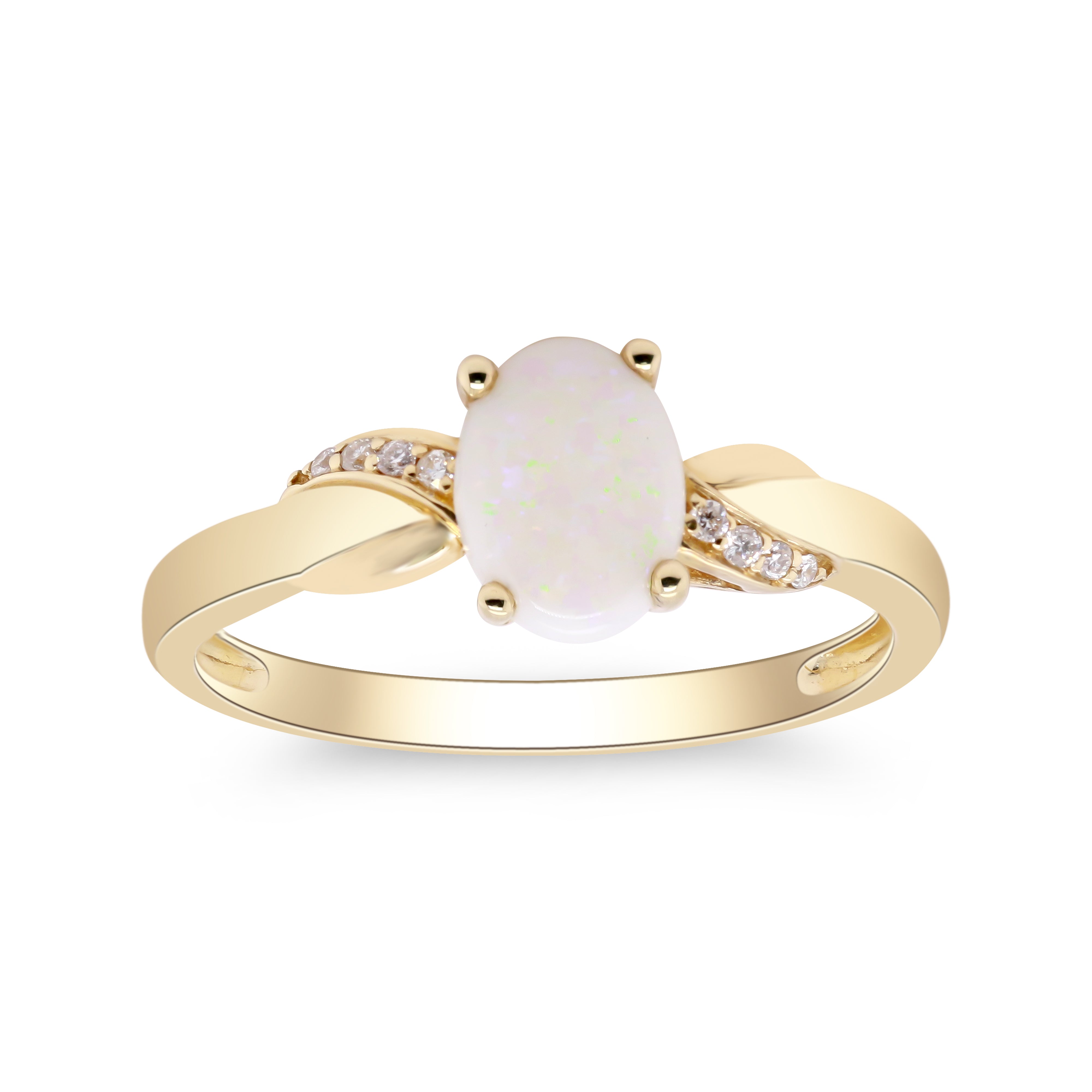 Decorate yourself in elegance with this Ring crafted from 10-karat Yellow Gold by Gin & Grace. This Ring is made up of Oval-Cut (1 pcs) 0.70 carat African Opal and Round Cut Diamond (8 Pcs) 0.04 Carat. This Ring weighs 2.09 grams. This delicate Ring is polished to a high finish shine.