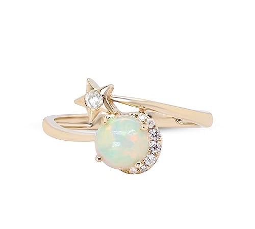 Luna 14K Yellow Gold Round-Cut Natural African Opal Ring