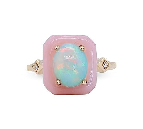Adeline 14K Yellow Gold Oval-Cut Natural Pink Opal and Ethiopian Opal Ring