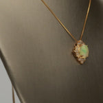 Stunning, timeless and classy eternity Unique Pendant. Decorate yourself in luxury with this Gin & Grace Pendant. This Pendant is made up of Oval-Cut Prong Setting Natural Opal (1 pc) 0.83 Carat and Round-Cut Prong Setting Diamond (24 pcs) 0.09 Carat accent stones for a lovely design. This pendant is weight 1.62 grams. The pendant is crafted of shining 10-karat Yellow Gold and is completed by a highly polished finish.