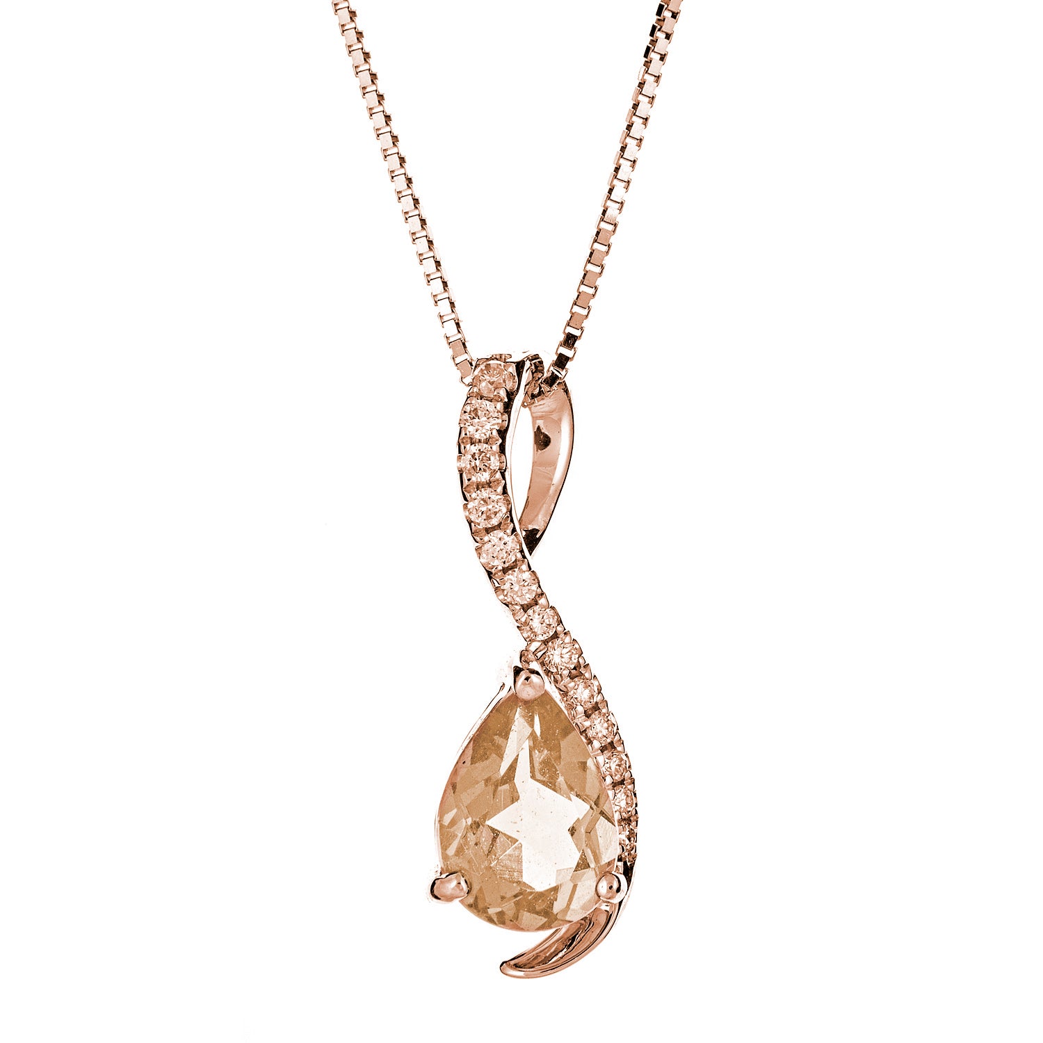 Perfect for your jewelry collection, the pendant showcases an ornate design by Gin & Grace. This Pendant is made up of 10K Rose gold is polished and showcases ideal Pear-Cut Genuine Madagascar Morganite gemstones (1 Pc) 0.67 Carat and Round-Cut Prong Setting Diamond (13 Pcs) 0.05 Carat accent stones for a lovely design. This Pendant is weight 0.59 grams. The Pendant is crafted of shining 10-karat Rose Gold and is completed by a highly polished finish.
