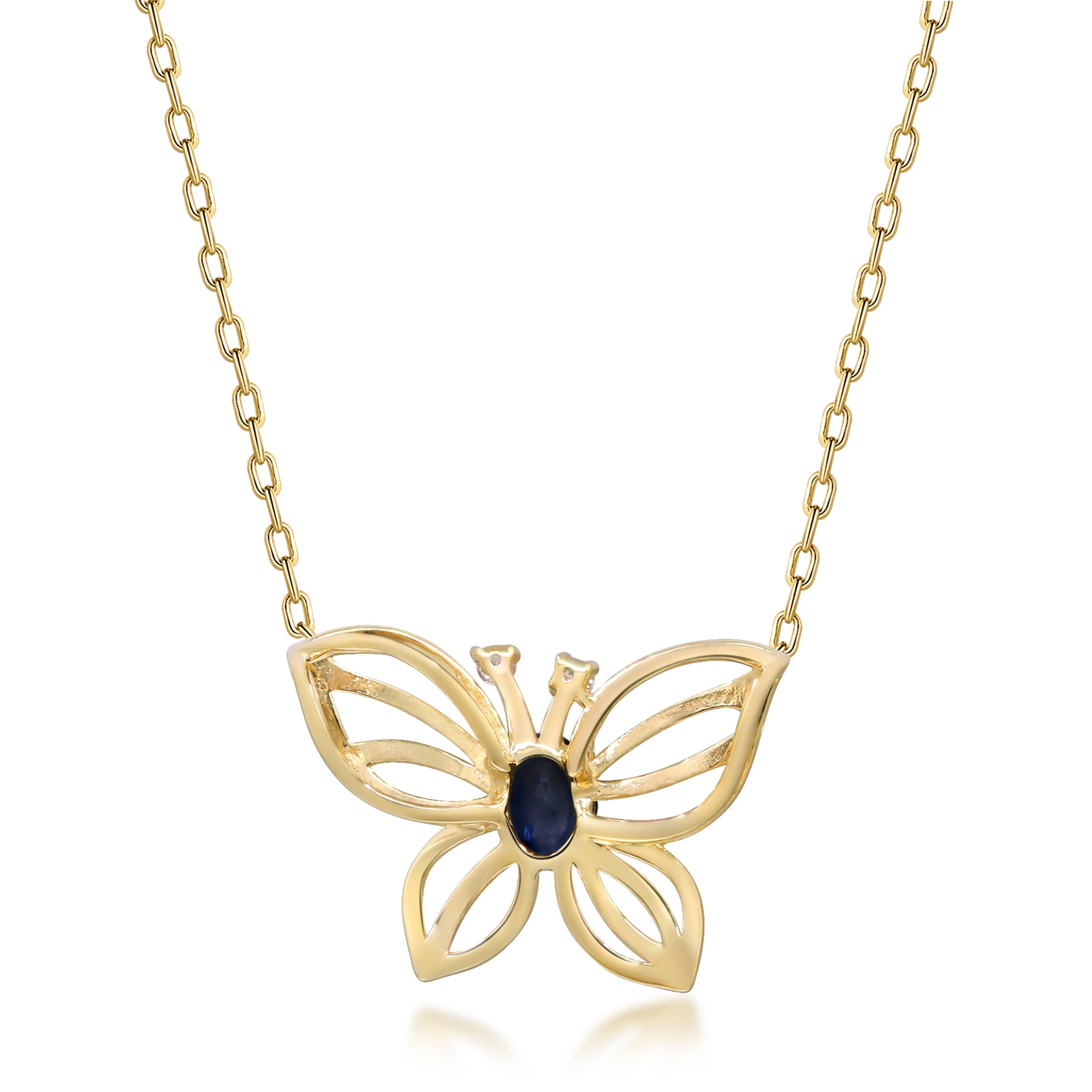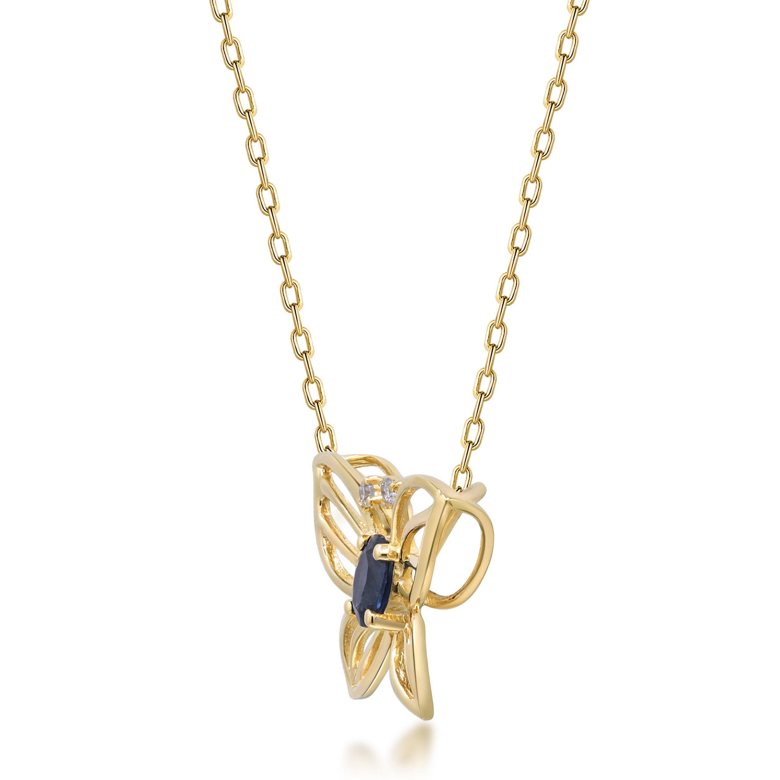 Decorate yourself in elegance with this Pendant is crafted from 10K Yellow Gold by Gin & Grace. This Pendant is made up of Oval-Cut Blue Sapphire (1 pcs) 0.22 carat and Round-cut White Diamond (2 Pcs) 0.09 Carat. This Pendant is weight 0.52 grams. This delicate Pendant is polished to a high finish shine.