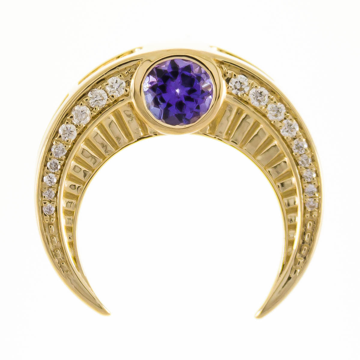 Decorate yourself in elegance with this Pendant is crafted from 18-karat Yellow Gold by Gin & Grace. This Pendant is made up of Round-Cut Tanzanite (1 pcs) 0.54 carat and Round-cut White Diamond (18 Pcs) 0.11 Carat. This Pendant is weight 2.15 grams. This delicate Pendant is polished to a high finish shine.