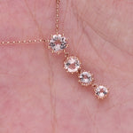 Decorate yourself in elegance with this Pendant is crafted from 10-karat Rose Gold by Gin & Grace Pendant. This Pendant is made up of Round-Cut Prong setting Genuine Madagascar Morganite (4 Pcs) 1.74 Carat. This Pendant weighs 2.05 grams. The gorgeous Pendant hangs from an 18-inch wheat chain. This delicate Pendant is polished to a high finish shine.