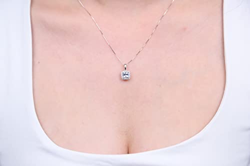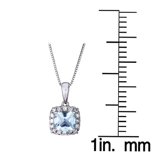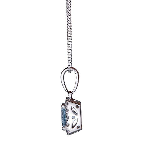 Decorate yourself in elegance with this Pendant is crafted from 10-karat White Gold by The Loop Club Pendant. This Pendant is made up of 6MM Cushion-Cut Prong setting Brazilian Aquamarine (1 Pcs) 0.93 Carat and Round-Cut Prong setting White Diamond (16 Pcs) 0.18 Carat. This Pendant is weight 2.12Â grams. The gorgeous Pendant hangs from a 18-inch wheat chain. This delicate Pendant is polished to a high finish shine.