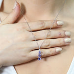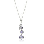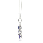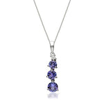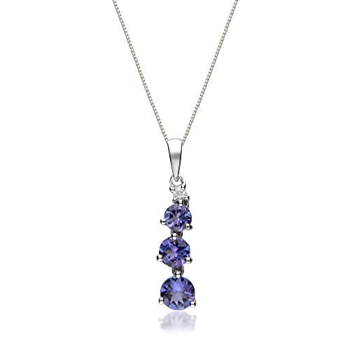 This beautiful Pendant features a journey design with three Gin & Grace Genuine Tanzanian Tanzanite gemstones accentuated by a single white diamond. Style: Pendant Gemstone colors: Blue Gemstone shapes: Round One Prong Set round-cut Genuine Tanzanian Tanzanite measuring 6 mm One Prong Set round-cut Genuine Tanzanian Tanzanite measuring 5 mm One Prong Set round-cut Genuine Tanzanian Tanzanite measuring 4 mm Gemstone weight: 1.41 carat Total gemstone weight: 1.41 Diamond: One Diamond cut: Natural Round Diamond weight 0.04 carats Color: G-H Clarity: I1-I2 Setting: Prong Metal: Silver Finish: High polish Chain: Box Chain length: 18 inches Clasp: Spring Pendant Metal weight: 0.90 grams Pendant dimensions: 6 mm wide x 25 mm long Pendant dimensions: 1 mm wide x 18 inches long.