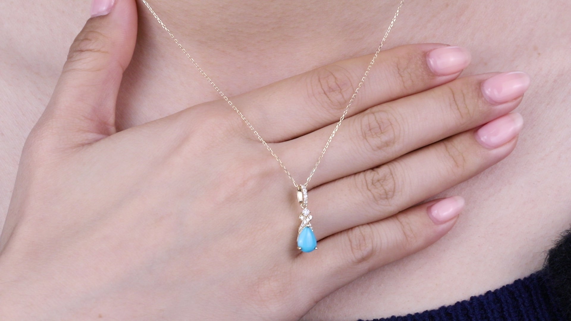 Emmie 10K White Gold Pear-Cab Arizona Turquoise Pendant