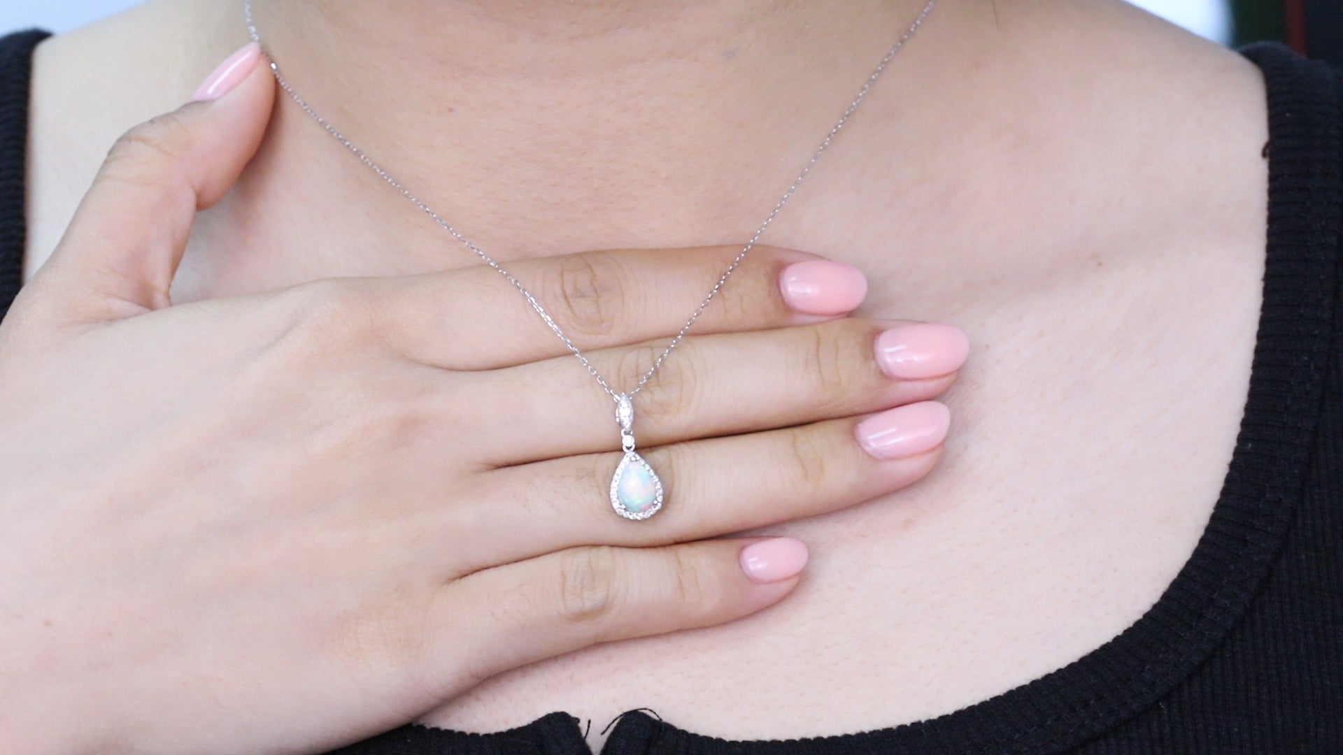 Layla 14K White Gold Pear-Cut Natural African Opal Pendant