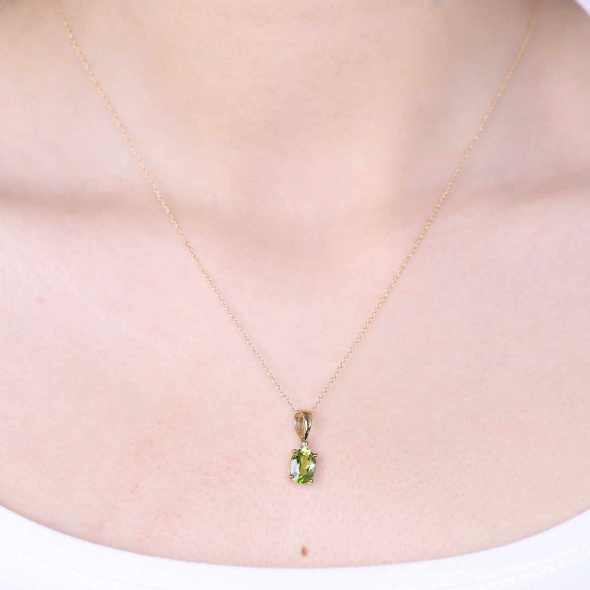 Stunning, timeless and classy eternity Unique Pendant. Decorate yourself in luxury with this Gin & Grace Pendant. The 10K Yellow Gold jewelry boasts Oval-Cut Prong Setting Genuine Manchurian Peridot (1 pc) 1.43 Carat, along with Natural Round cut white Diamond (1 Pcs) 0.02 Carat, accent stones for a lovely design. This Pendant is weight 0.71 grams. Crafted with 10K Yellow Gold, this delicate Pendant is polished to a high finish shine.