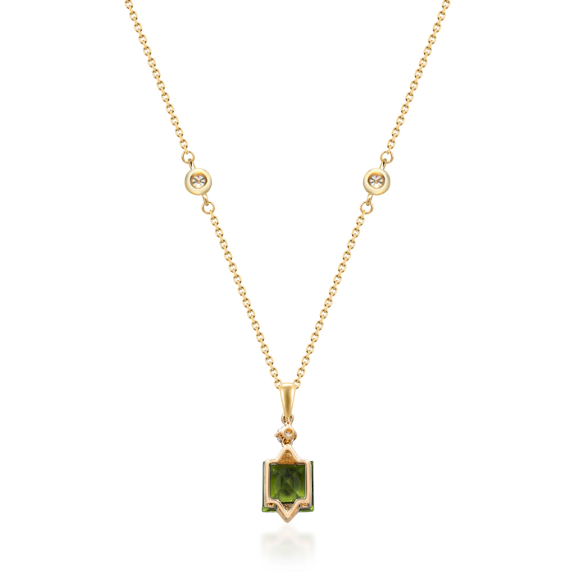 Decorate yourself in elegance with this Pendant is crafted from 10-karat Yellow Gold by Gin & Grace. This Pendant is made up of 6.0 mm Square-Cut Manchurian Peridot (1 pcs) 1.30 carat and Round-cut White Diamond (1 Pcs) 0.03 Carat. This Pendant is weight 1.78 grams. This delicate Pendant is polished to a high finish shine.