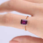 Lorelai 10K Rose Gold Emerald-Cut Madagascar Rhodolite Ring