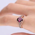 Stunning, timeless and classy eternity Unique Ring. Decorate yourself in luxury with this Gin & Grace Ring. The 10K Rose Gold jewelry boasts Oval-Cut Prong Setting Raspberry color Natural Rodholite Garnet (1 pcs) 2.31 Carat, along with Natural Round cut white Diamond (66 Pcs) 0.26 Carat and Natural Round cut Brown Diamond (18 Pcs) 0.21 Carat, accent stones for a lovely design. This Ring is weight 2.57 grams. Crafted with 10K Rose Gold, this delicate Ring is polished to a high finish shine