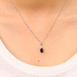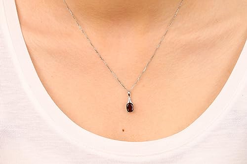 Decorate yourself in elegance with this Pendant crafted from 10-karat White Gold by Gin & Grace. This Pendant is made up of 8x6 mm Cushion-Cut Garnet (1 pcs) 1.81 carat and Round-cut White Diamond (5 Pcs) 0.05 Carat. This Pendant weighs 1.93 grams. This delicate Pendant is polished to a high finish shine.