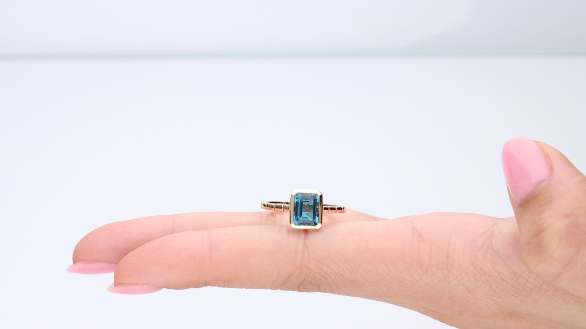 Karlee 10K Rose Gold Cushion-Cut Brazilian London Blue Topaz Ring