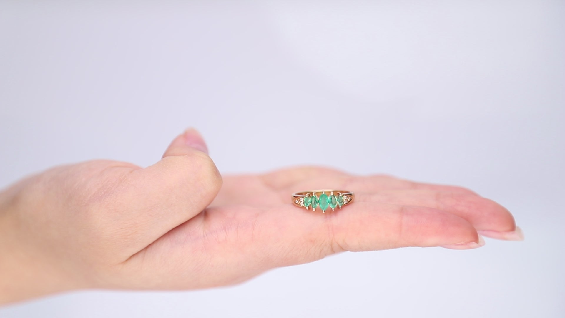 Regal Charm: Esther 10K Yellow Gold Marquise-Cut Natural Zambian Emerald Ring
