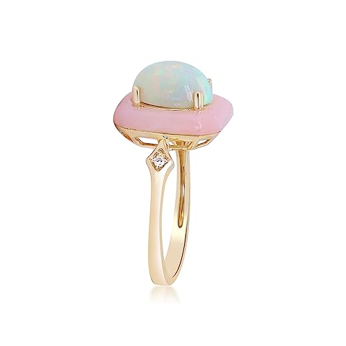 Decorate yourself in elegance with this Ring is crafted from 14-karat Yellow Gold by Gin & Grace. This Ring is made up of Oval-cut (2 pcs) 3.63 carat Ethiopian Opal and Round-Cut Diamond (2 Pcs) 0.02 Carat . This Ring weighs 3.25 grams. This delicate Ring is polished to a high finish shine.