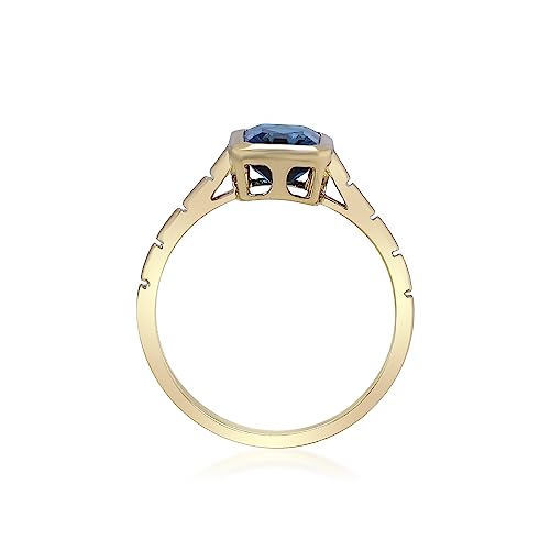 Stunning, timeless, and classy eternity Unique ring. Decorate yourself in luxury with this Gin & Grace ring. The 10K Yellow Gold jewelry boasts an Emerald-Cut Prong Setting Genuine Brazilian London Blue Topaz (1 pcs) 1.97 Carat accent stones for a lovely design. This ring weighs 1.97 grams. Crafted with 10K Yellow Gold, this delicate Ring is polished to a high finish shine.