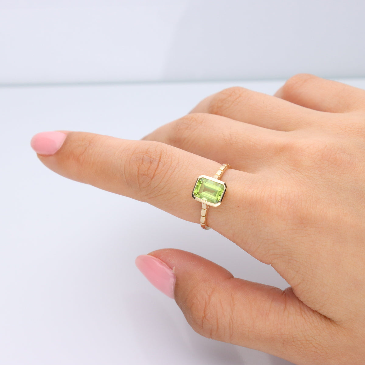 Ainoi 14K Yellow Gold Free Emerald-Cut Manchurian Peridot Ring