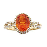 This Wedding ring from Gin & Grace features an oval-cut orange color Natural Mexican Fire Opal that will complement your loved one's unique sense of style. Crafted from 14k Yellow Gold and accented with round-cut diamonds for a glittering finish that is sure to turn heads. The diamonds color white and complement the bright orange hue of the gemstone.