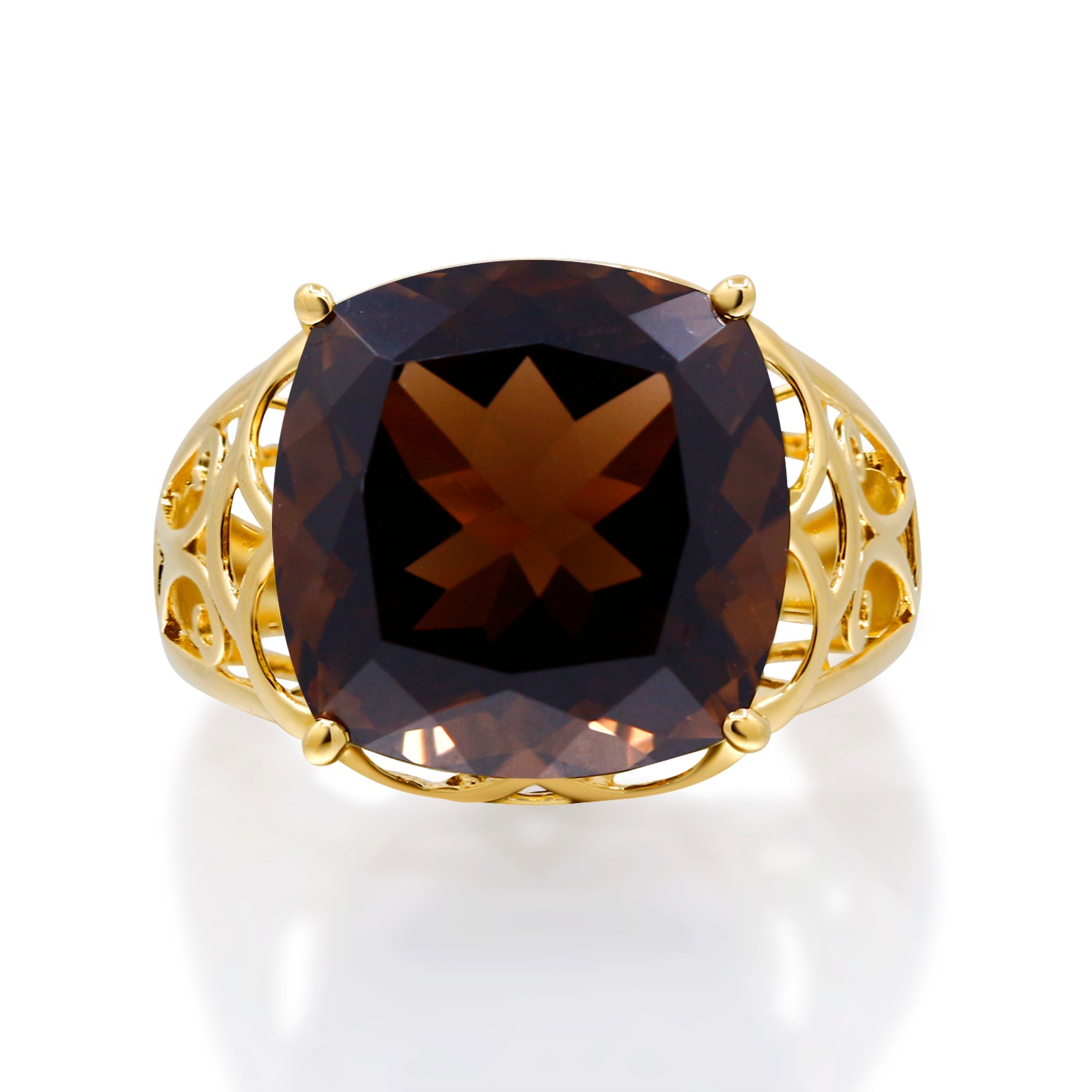 Decorate yourself in elegance with this Ring is crafted from 10-karat Yellow Gold by Gin & Grace. This Ring is made up of 14.0 mm smoky quartz Cushion-cut (1 pcs) 12.83 carat. This Ring is weight 2.98 grams. This delicate Ring is polished to a high finish shine.