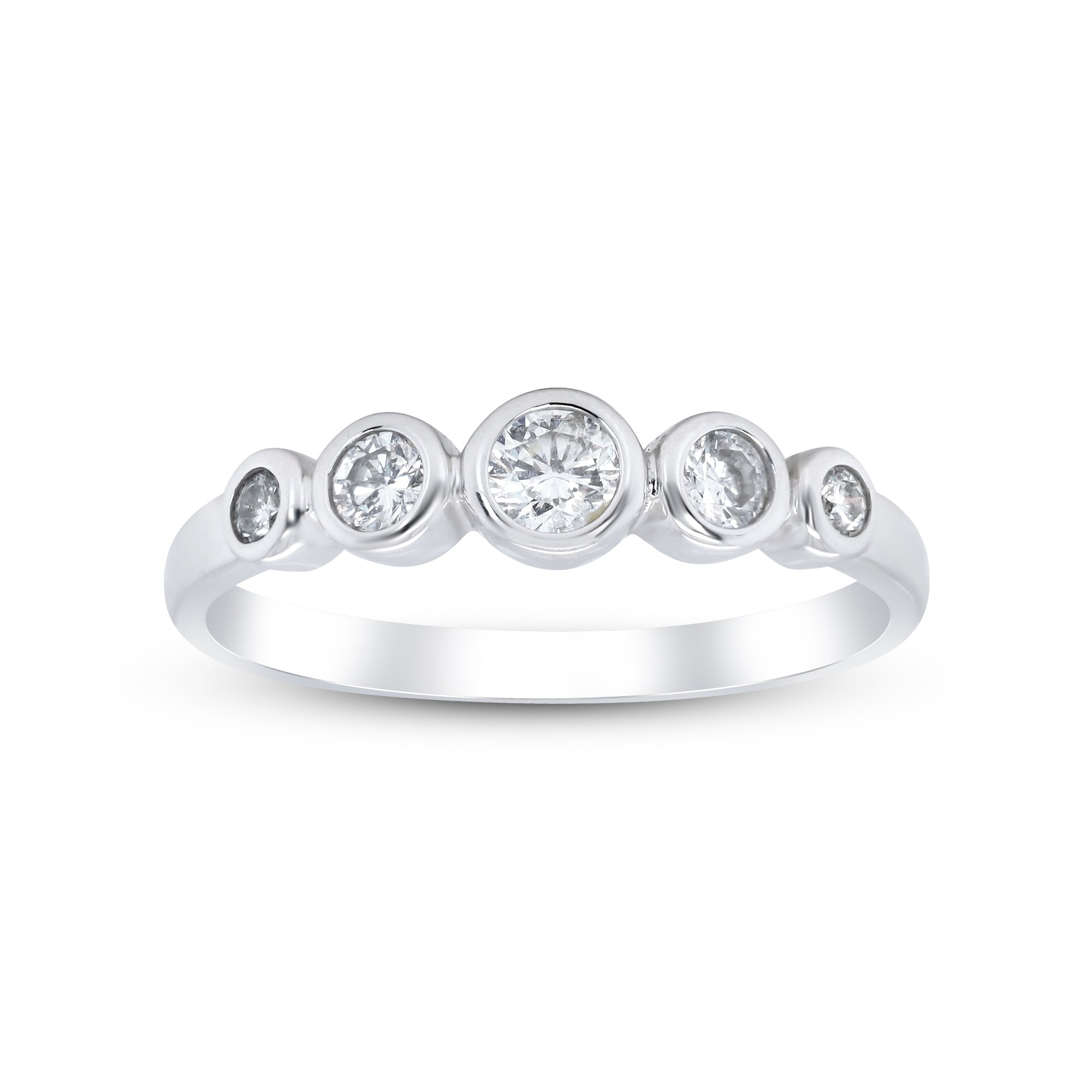 Decorate yourself in elegance with this Ring is crafted from 14K White Gold by Gin & Grace Ring. This Ring is made up of Round-Cut White Diamond (5 Pcs) 0.42 Carat. This Ring is weight 2.22 grams. This delicate Ring is polished to a high finish shine.