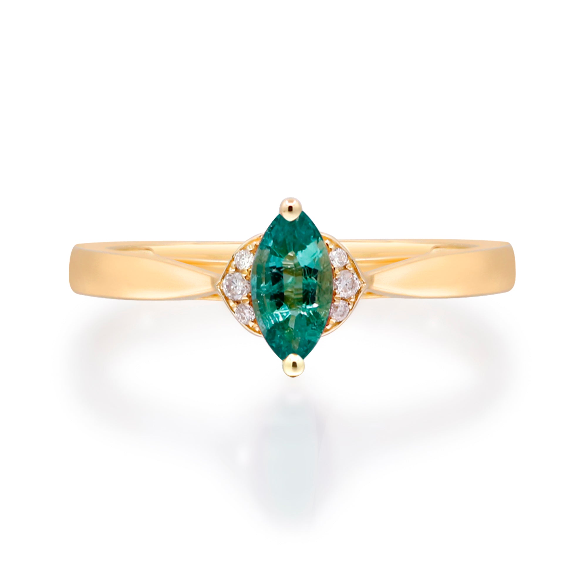 Enchanting Elegance: Blair 14K Yellow Gold Ring with Marquise-Cut Natural Zambian Emerald