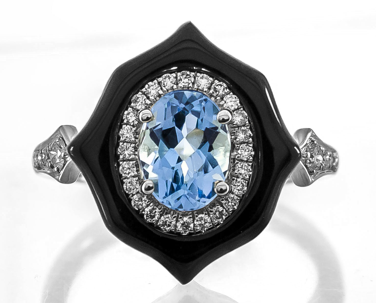 Esther 10K White Gold Oval-Cut Swiss Blue Topaz Ring
