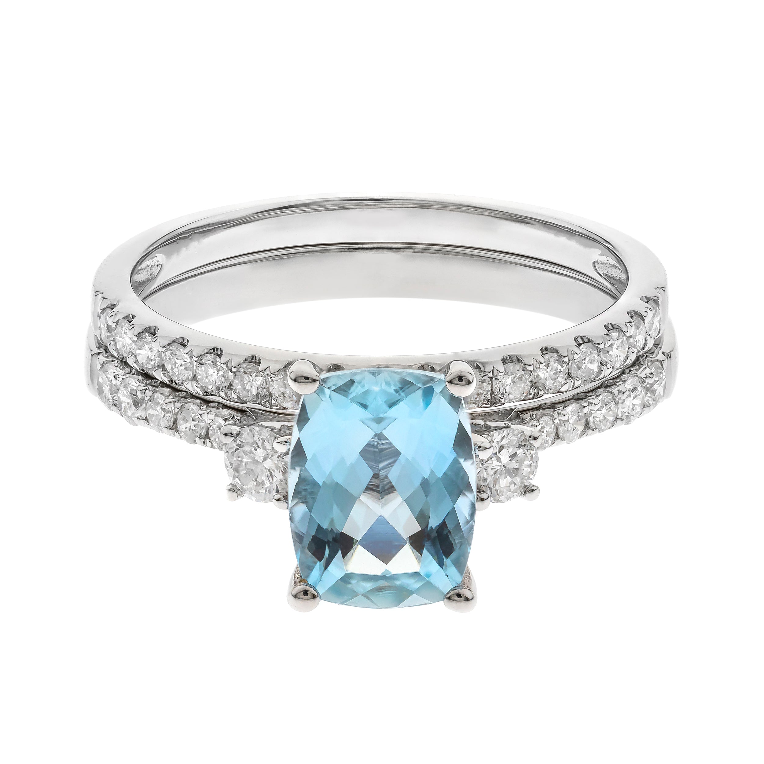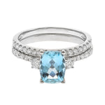 Stunning, timeless and classy eternity Engagement ring. Decorate yourself in luxury with this Gin & Grace ring. This ring is made up of Emerald-Cut Prong Setting Genuine Brazilian Aquamarine (1 pcs) 1.18 Carat and Round-Cut Prong Setting Diamond (31 pcs) 0.47 Carat accent stones for a lovely design. This ring is weight 3.18 grams. The ring is crafted of shining 14-karat White Gold and is completed by a highly polished finish.