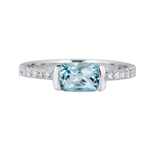 Stunning, timeless and classy eternity Unique ring. Decorate yourself in luxury with this Gin & Grace ring. The 10k White Gold jewelry boasts Cushion-Cut Channel Setting Genuine Brazilian Aquamarine (1 pcs) 0.82 Carat and Round-Cut Prong Setting Natural Diamond (14pcs) 0.19 Carat accent stones for a lovely design. This ring is weight 1.83 grams. Crafted with 10k White Gold, this delicate Ring is polished to a high finish shine.