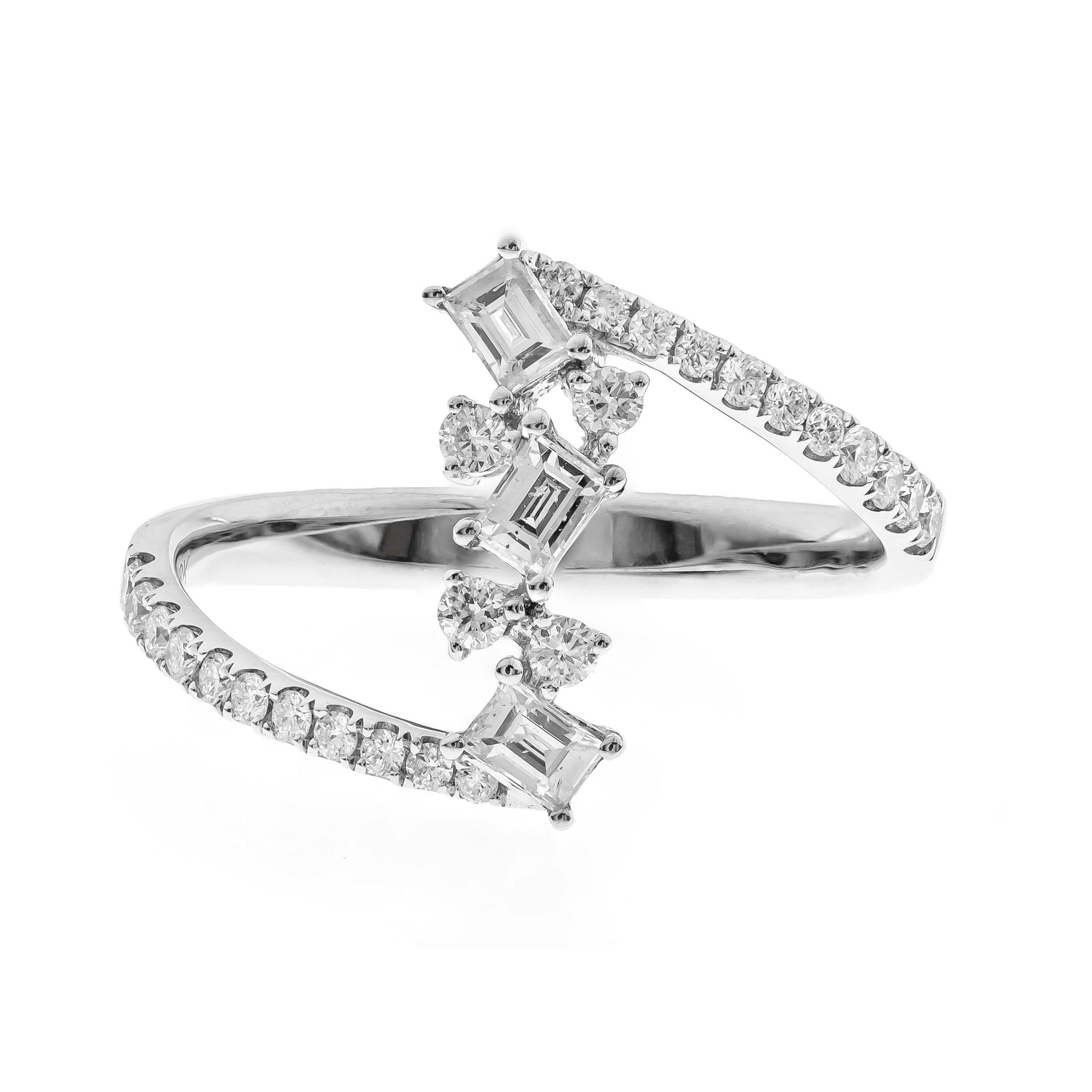 Decorate yourself in elegance with this Ring is crafted from 10K White Gold by Gin & Grace. This Ring is made up of Round-Cut White Diamond (26 Pcs) 0.30 Carat, Baguette-Cut White Diamond (3 pcs) 0.32 carat. This Ring is weight 2.42 grams. This delicate Ring is polished to a high finish shine.
