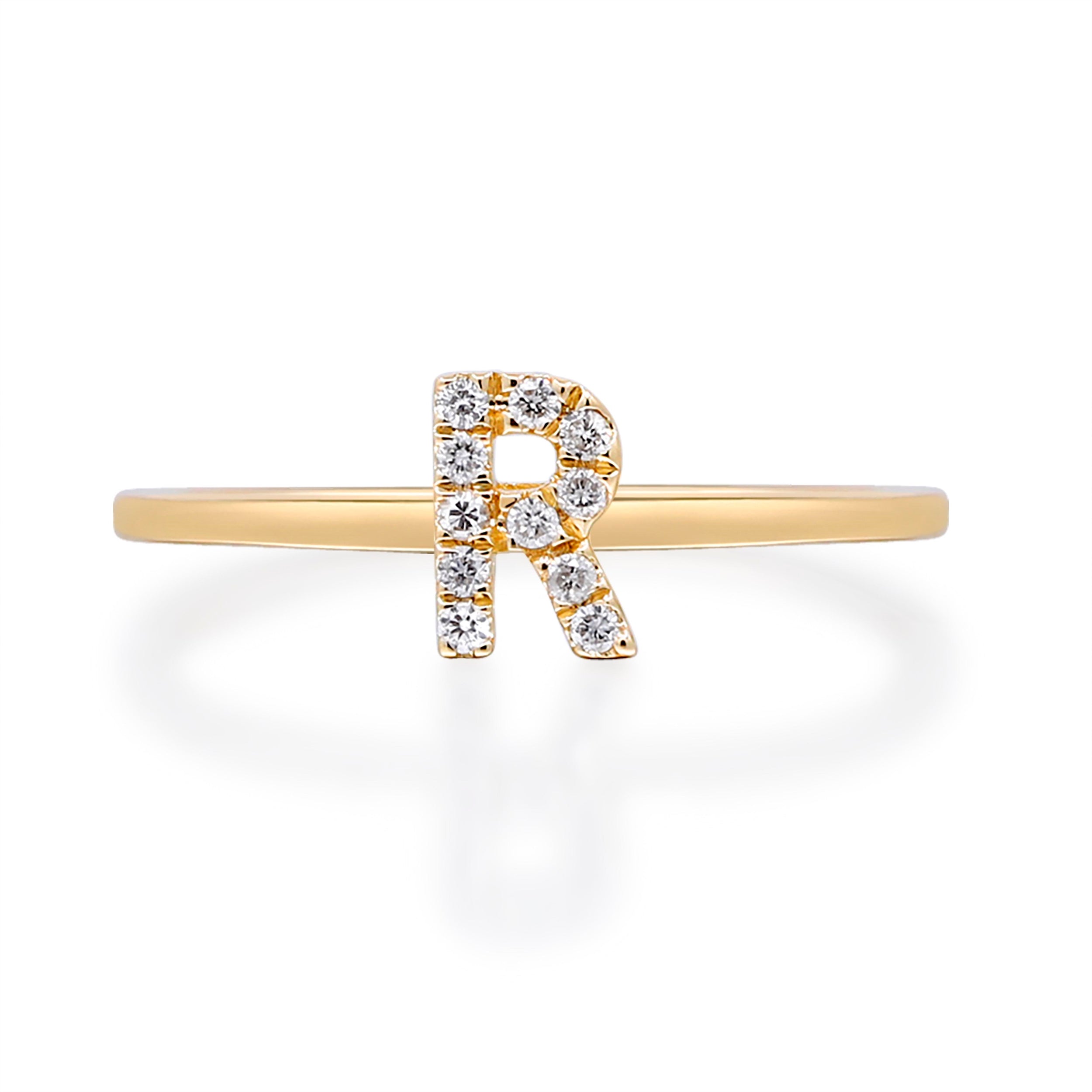 R Initial 14K Yellow Gold Round-Cut White Diamond Ring