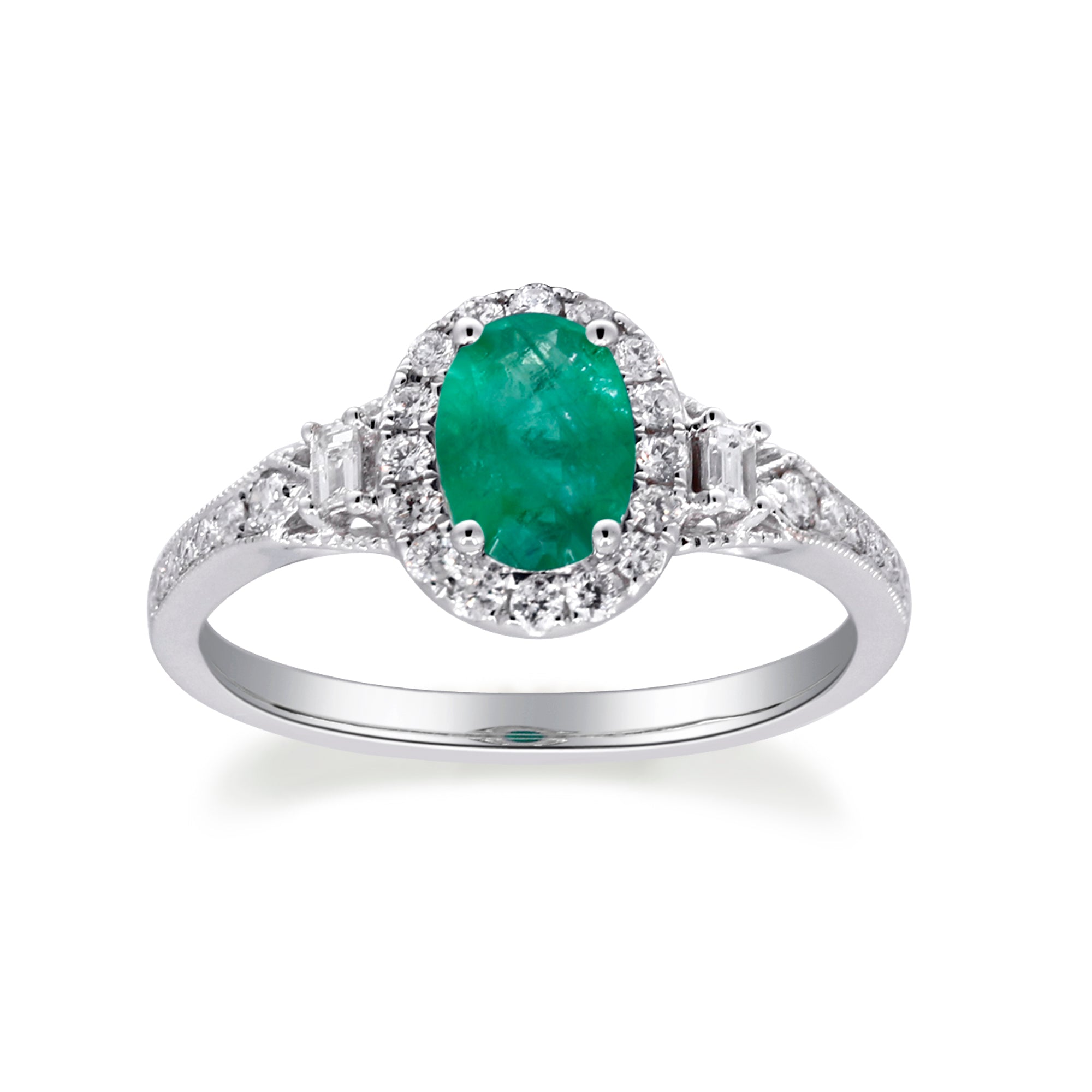 Perfect for special occasions or as a symbol of everyday luxury, this ring combines the timeless beauty of an oval-cut emerald with the brilliance of white diamonds. Its exquisite craftsmanship and attention to detail make it a statement piece that will add elegance and sophistication to any ensemble.