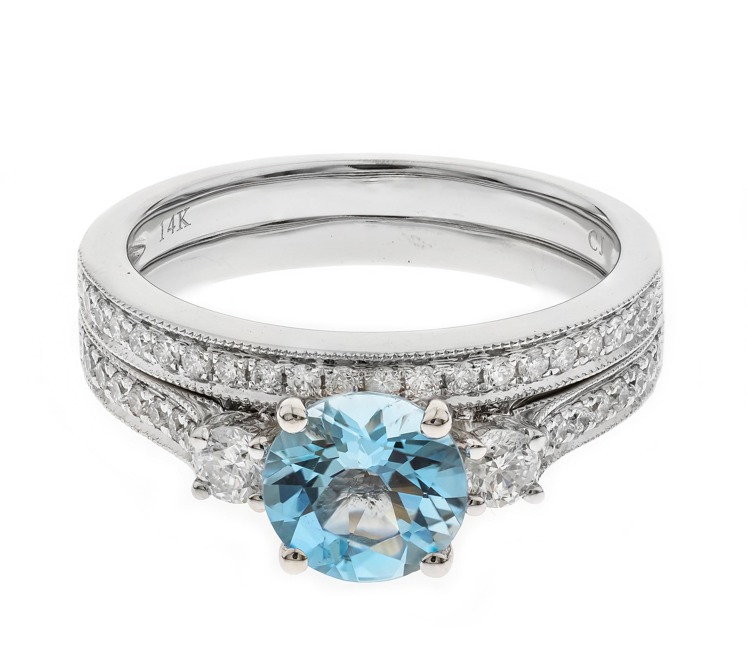 Emmy 14K White Gold Round-Cut Brazilian Aquamarine Ring