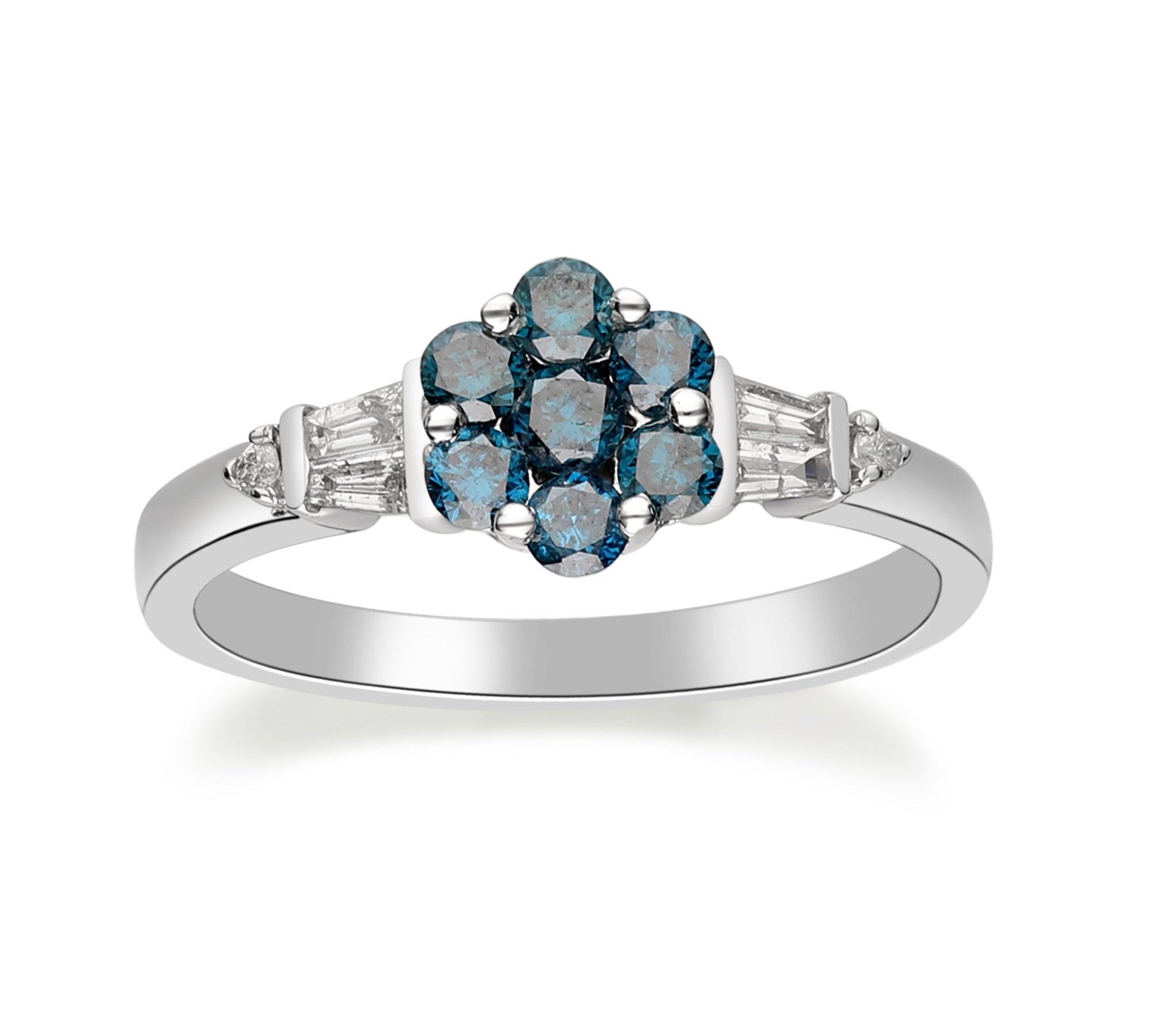 Charley 10K White Gold Round Cut Blue Diamond Ring