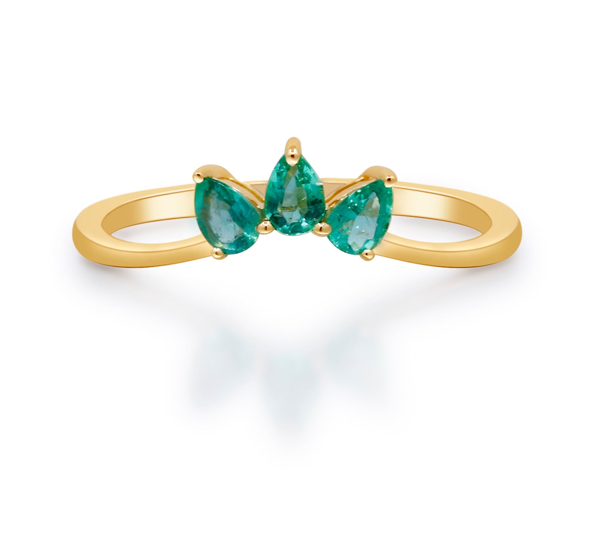 Radiant Elegance: Reese 10K Yellow Gold Ring with Pear-Cut Natural Zambian Emerald