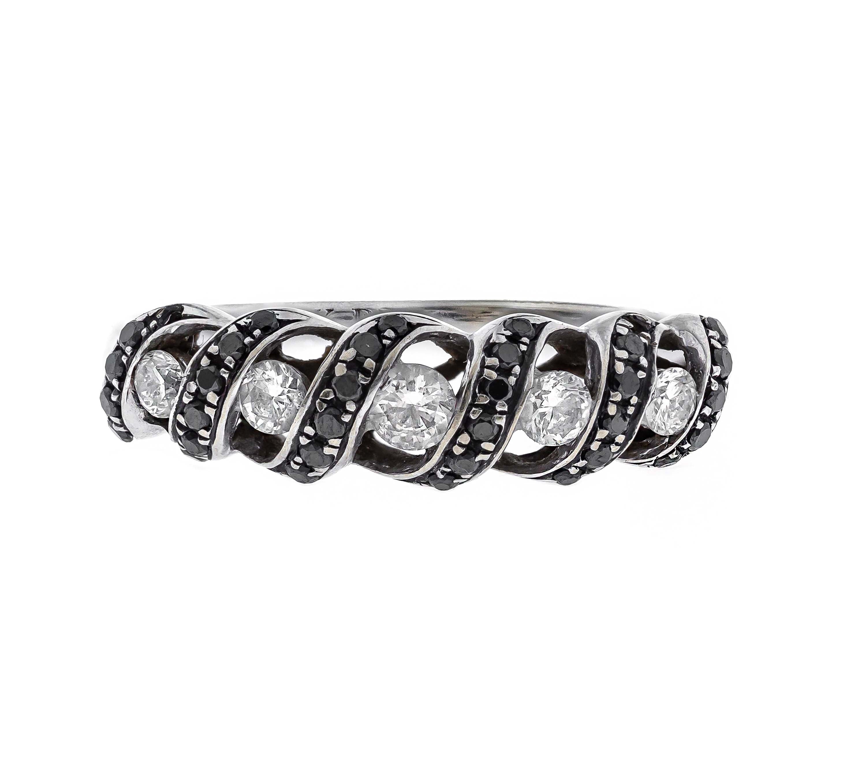 Vida 10K White Gold Round-Cut Black Diamond Ring