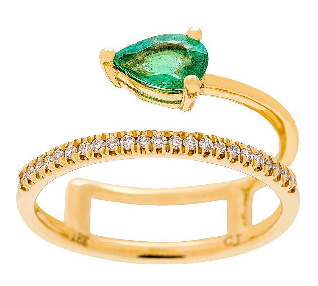 Serena 18K Yellow Gold Pear-Cut Natural Zambian Emerald Ring