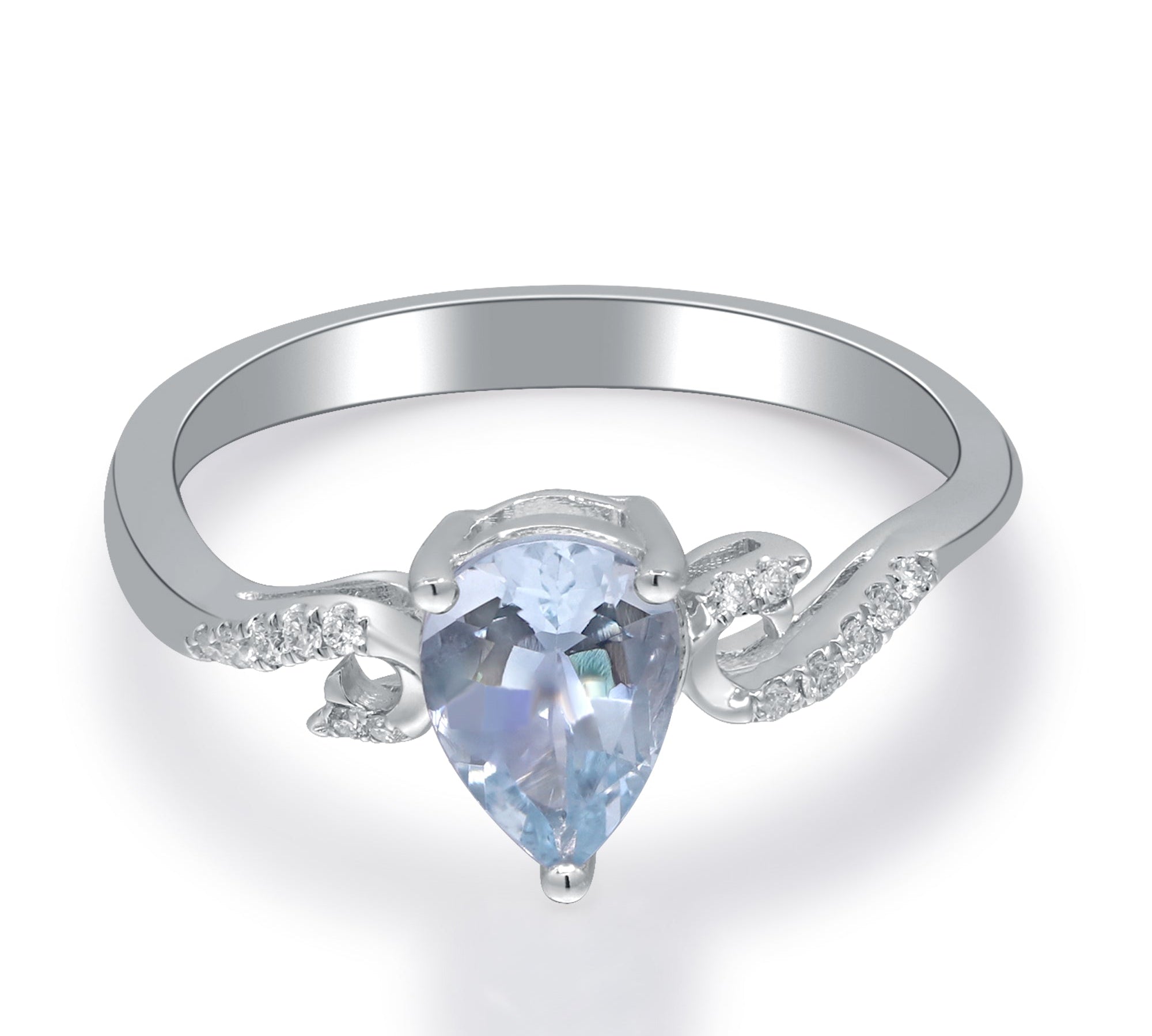 Brielle 10K White Gold Pear-Cut Aquamarine Ring