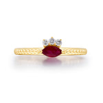 Decorate yourself in elegance with this Ring is crafted from 14K Yellow Gold by Gin & Grace. This Ring is made up of Marquise-Cut Mozambique Ruby (1 pcs) 0.28 carat and Round-cut White Diamond ( 3 Pcs) 0.6 Carat. This Ring is weight 1.55 grams. This delicate Ring is polished to a high finish shine.
