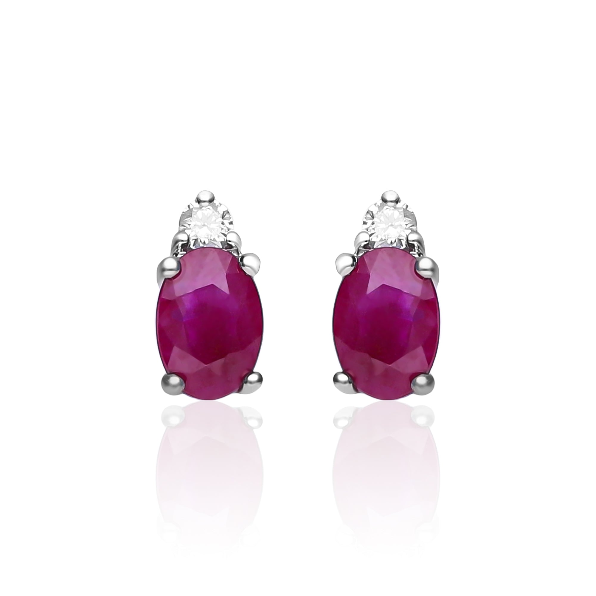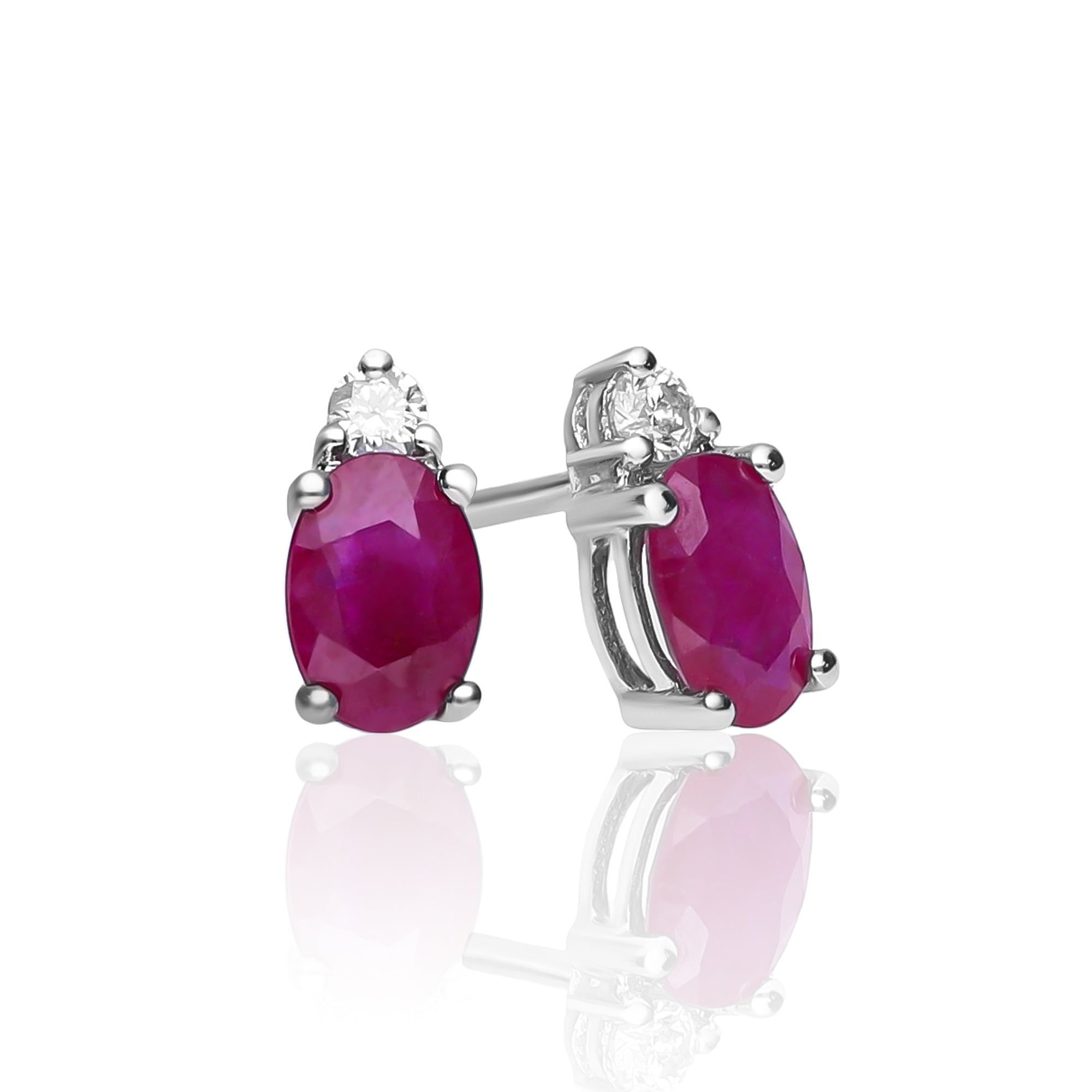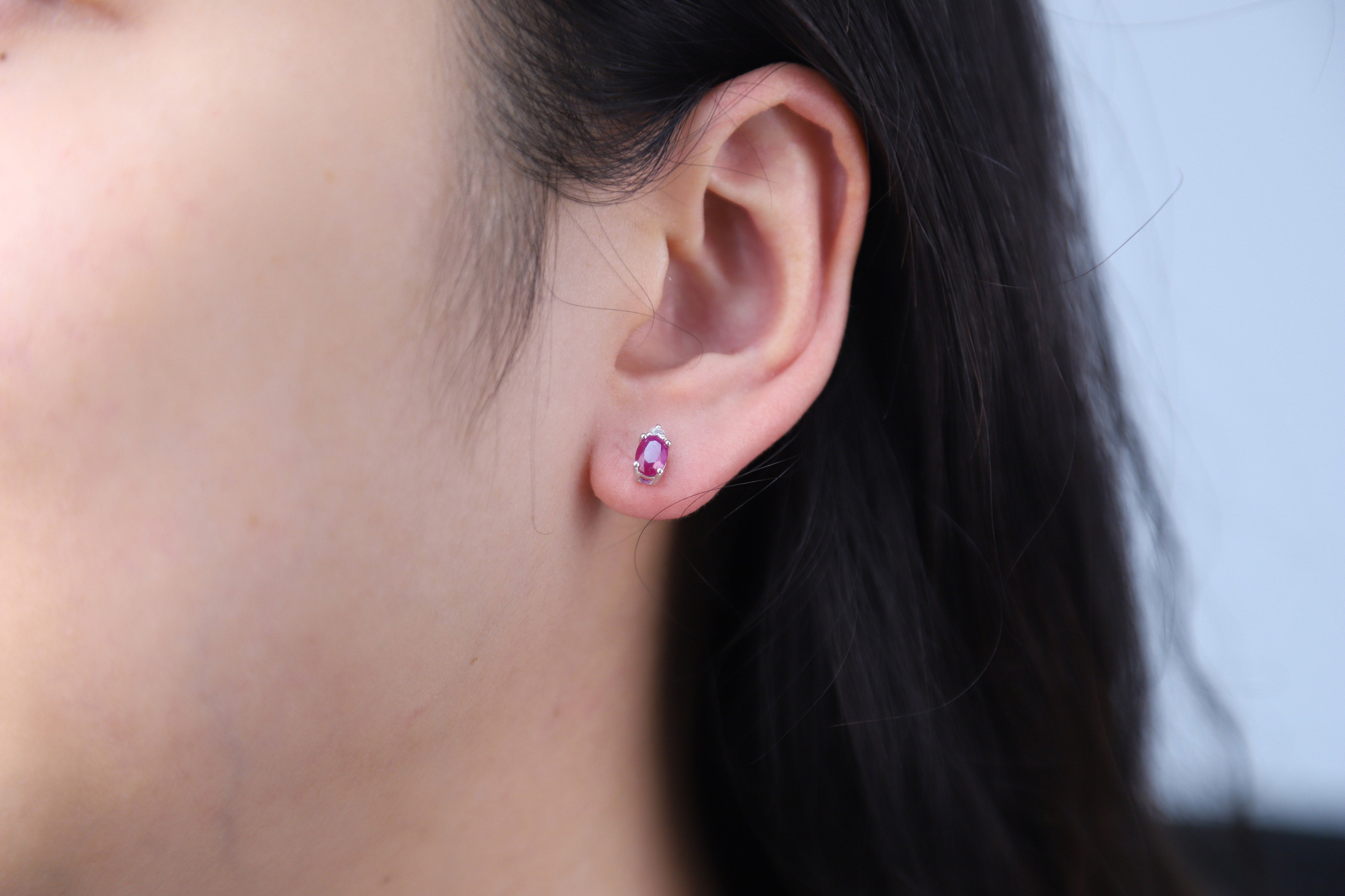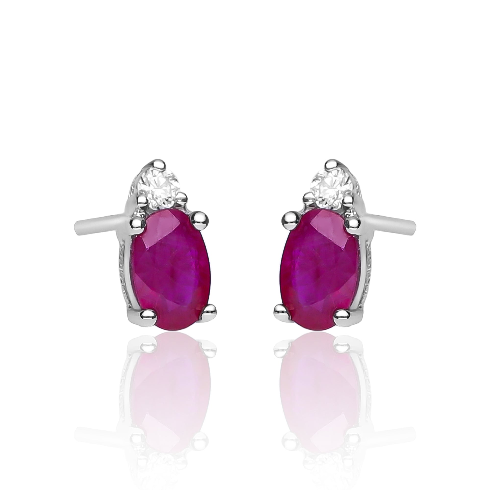 Stunning, timeless, and classy eternity Unique Earring. Decorate yourself in luxury with this Gin & Grace Earring. This Earring is made up of Oval-Cut Prong Setting Genuine Mozambique Ruby (2 pcs) 1.13 Carat and Round-Cut Prong Setting Diamond (2 pcs) 0.07 Carat accent stones for a lovely design. This Earring weighs 1.36 grams. The Earring is crafted of shining 14K White Gold and is completed by a highly polished finish.