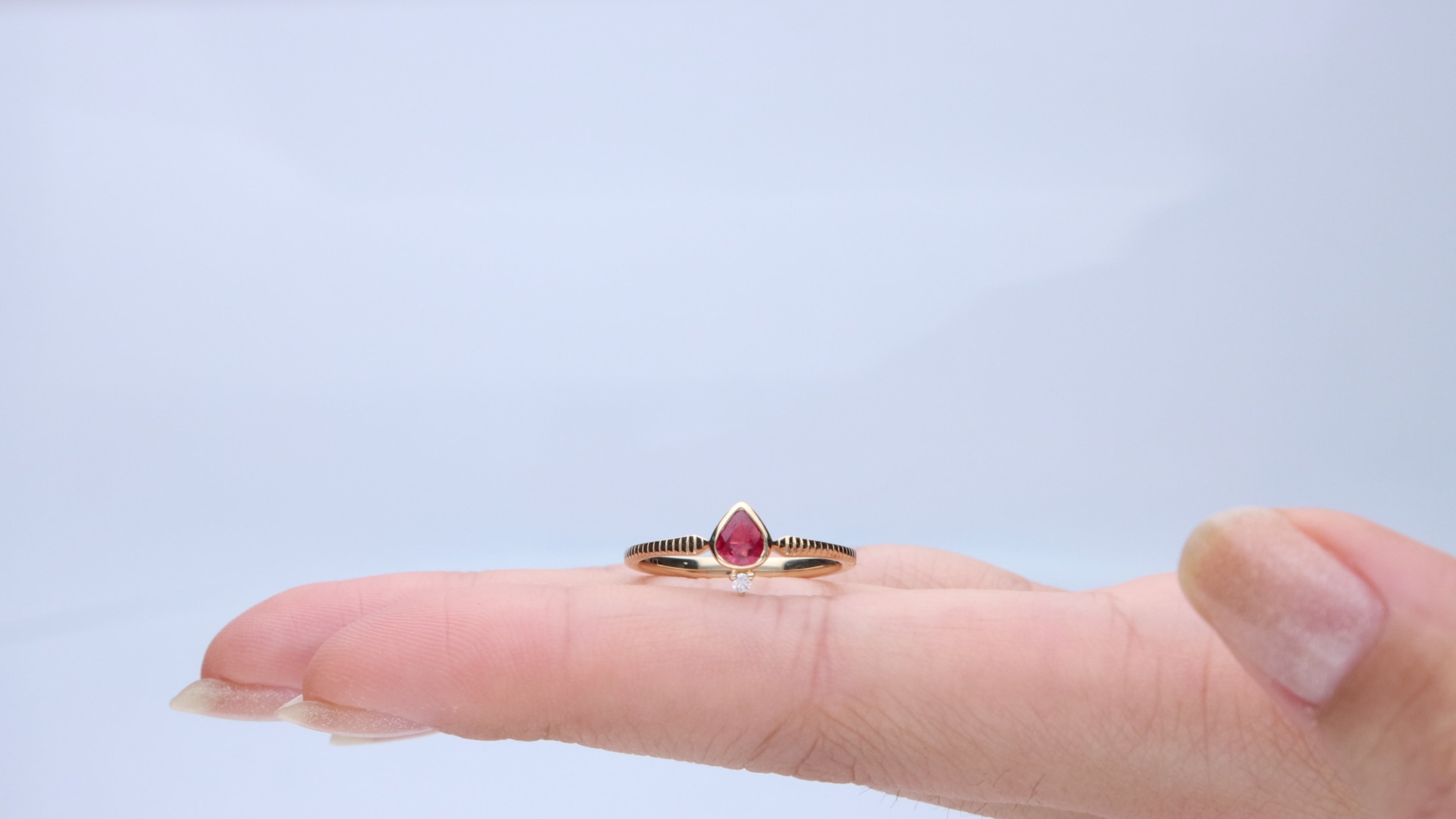 Frances 10K Yellow Gold Pear-Cut Mozambique Ruby Ring